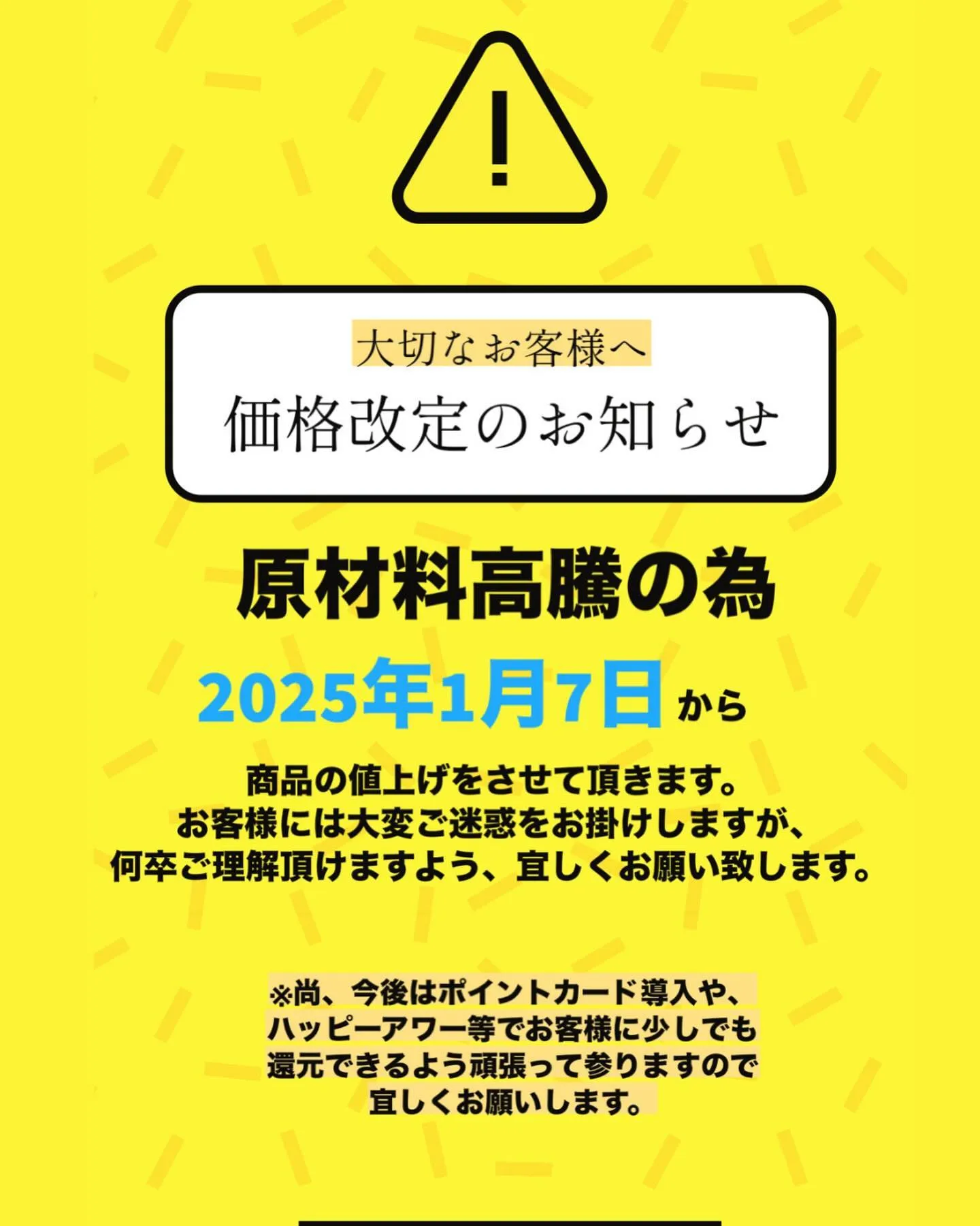多くのお客様に岩中豚をお召し上がり頂きたく、オープン以来ギリギリの価格で提供をさせて頂いておりましたが、著しい原材料高騰により現在の価格維持が困難となり、やむを得なく価格値上げの運びとなりました。